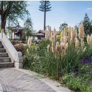 园区以一池、一院、一花园为整体构造,在山水之间,尽显定州风采。在园区设计上,大成国际以展现城市精神面貌和园艺水平为主要目标,结合当地具有代表性的城市文化和风土特产,采用绿雕,陶土,木构等较为生态的景观元素,推动新品种、新材料、新工艺、新技术、新理念在园林绿化中的运用,打造连接人与自然、城市与生态的“绿色会客厅”。